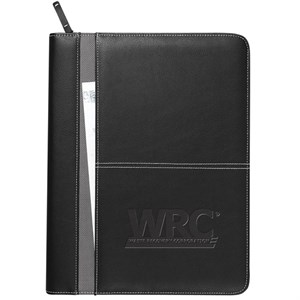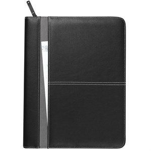 This sleek padfolio has a unique pebble-grain vinyl cover that zips shut. Inside you'll find organizer pockets and a zippered mesh accessories pocket for all your gear. A calculator and writing pad are included.