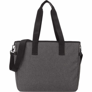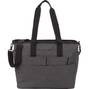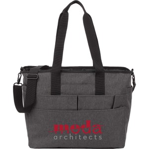 Designed to handle daily work commutes to the office or the casual long-weekend travel — the Multi-Pocket Laptop Tote offers both functionality and style. Featuring a padded laptop compartment that holds 16" laptops, and a separate tablet compartment with a hook-and-loop strap to secure them in place. Carry this tote using the adjustable crossbody strap, or the sturdy grab handles. On the front of the tote you’ll find six pockets of various sizes to keep and all the daily essentials organized. The side pocket has an elastic band to accommodate various drinkware styles and sizes, and the crossbody strap has styles sturdy metal clips that allow it to be removed when not in use. This tote is made using 300D rPET fabric.