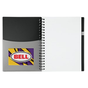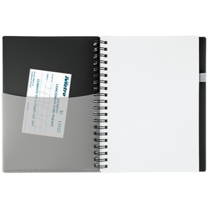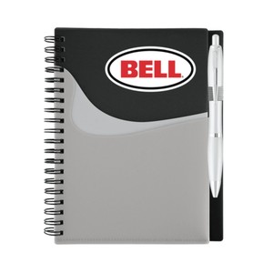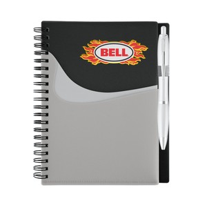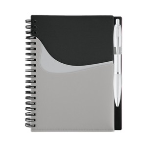 "70-sheet spiral bound lined notebook with brilliant translucent color covers and matching translucent ballpoint pen (black ink). Includes convenient extra note pocket on outside cover; inside pocket to hold business cards or notes."