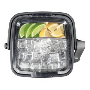 Keep ice and garnishes handy, for indoor parties or outdoor picnics. Be prepared for any party, inside or out, with this insulated Ice Bucket. Includes nylon tongs that hang conveniently from either side and a removable tray that holds drink garnishes. The carrying handle stays out of the way when not in use and the meltwater reservoir keeps meltwater away from cubes. BPA free Hand wash