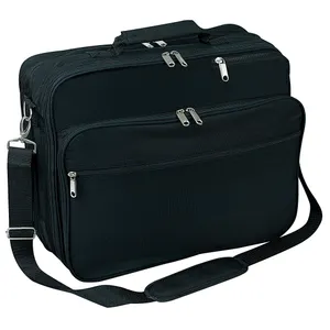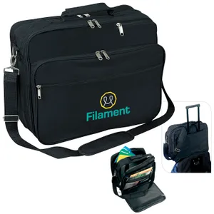 This briefcase is a master organizer with multiple zippered compartments, and its larger size fits most laptops up to 17". Use the back sleeve, which fits over the handle of your luggage, for extra convenience when traveling.