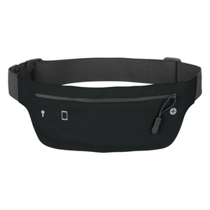 Made Of Polyester. Large Front Zippered Pocket. Inside Key Pocket. Built-In Slot For Earbuds. Adjustable Elastic Waist Strap. Running Belt Adjusts From 25" to 44". Spot Clean/Air Dry.