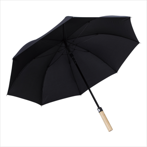 No matter the weather, Shed Rain has you covered. Elevate your umbrella game with a sophisticated take on the traditional stick umbrella. Crafted with a bamboo handle, a PFAS-free RPET canopy, and sturdy fiberglass and steel components, this umbrella merges modern style with practical design. Its 50" arc pops open with the push of a button, so youâll be ready for whatever Mother Nature throws your way. Canopy is made of PFAS-free material. Shed Rain covers this product with a lifetime warranty (excluding imprint).