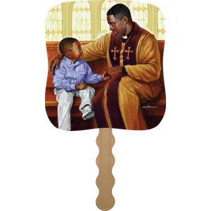 Stay cool and spread your message with this beautifully designed hand-held paper fan featuring an uplifting image on the front and your imprint on the back. Perfect for so many occasions, it combines practicality with a meaningful message, adding elegance to your event while keeping attendees feeling refreshed. The FSC® label means that the materials used for this product come from well-managed FSC®-certified forests and other controlled sources.
