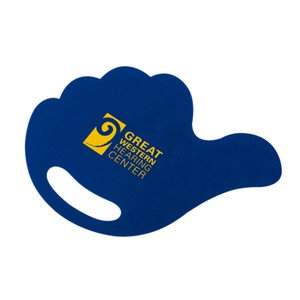 "Bold color hand shaped fan with die-cut handle; PP material; large imprint area; flat and easy to mail; great when you need a breath of fresh air!"