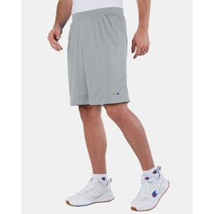 3.7 oz./yd² (US), 6.1 oz/L yd (CA), 100% polyester mesh;2.1 oz./yd² (US), 3.1 oz/L yd (CA), 100% polyester tricot liner;Full athletic fit;Multi-needle stitched elastic waistband;Internal drawcord;9" inseam;On-seam pockets;Champion “C” logo on left leg;Proud member of the U.S. Cotton Trust Protocol.;Made with OEKO-TEX certified low-impact dyes.;We reduce plastic waste by the removal of polybags from all products except color White;;This product meets the following Sustainable Style subcategories:;;Sustainable Manufacturing: This product was made in a facility that is run by at least 50% renewable energy;Socially Conscious Manufacturing: This product was made in a facility that utilizes the Higg Index and has implemented Level 2 practices or above, and was made by a mill that has partnered with or is accredited by the Fair Labor Association;