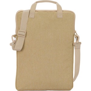 The Vertical Messenger Bag is a stand out option available in Tan. It features a padded laptop sleeve, a front zippered organizational pocket, and a top grab handle. Through a partnership with 1% For The Planet one percent of sales of this and all EcoSmart® products will be donated to environmental nonprofits.