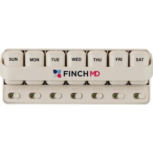 Simplify your wellness routine with the Wellable™ Daily Pill and Supplement Organizer. Designed for convenience, it features seven removable daily compartments that make it easy to plan and carry your vitamins, supplements, or medications. Each pod slides open for quick access, and built-in reminder tracks help you mark whether you've taken your dose to stay on schedule. Compact and modern, this sleek organizer fits seamlessly into your home, office, or travel routine. Packaged with a branded FSC® Mix bellyband.